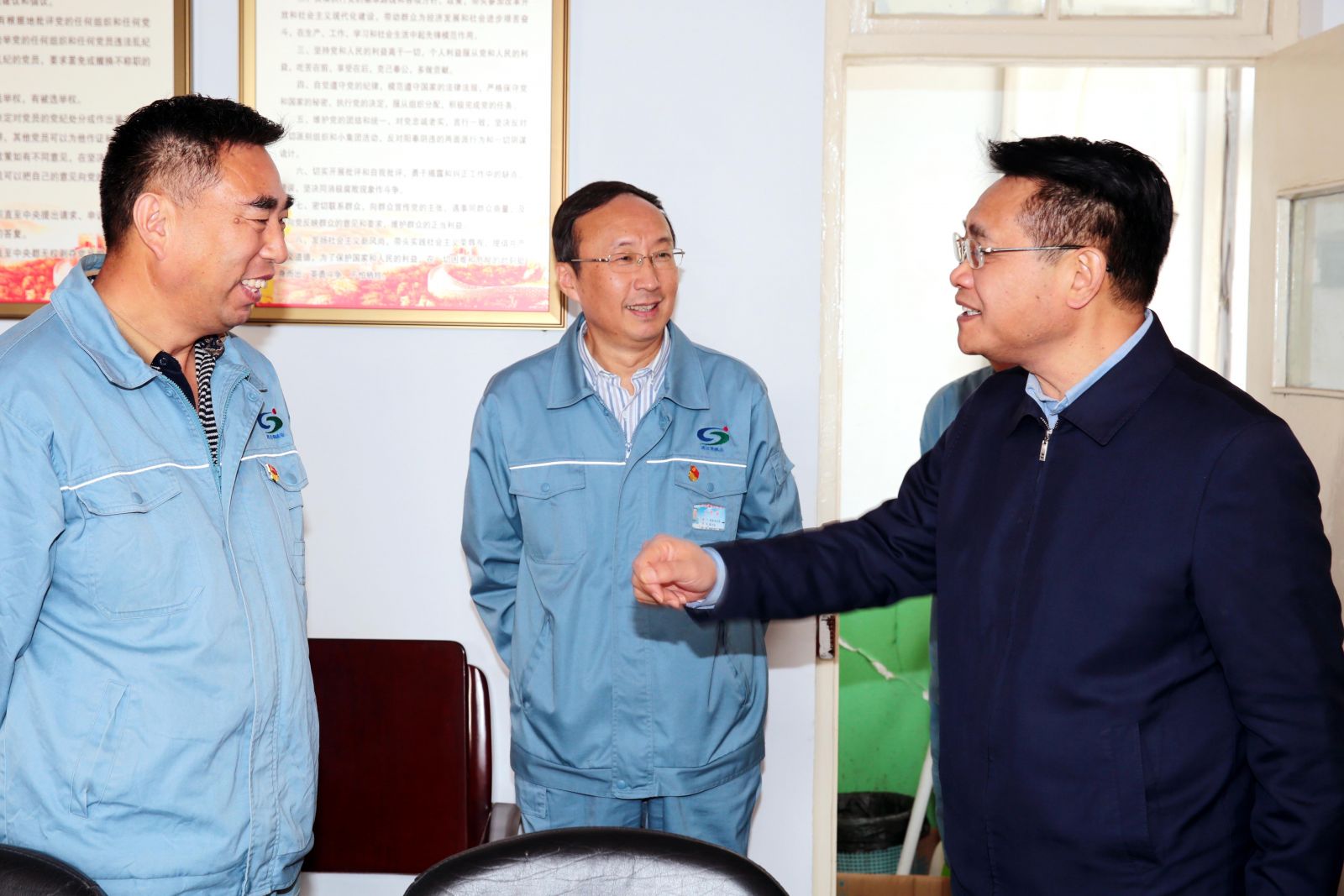 10月14日,市人大常委副主任、工會主席王家全一行深入堿業(yè)公司開展調(diào)研工作。該公司黨委書記、董事長張衛(wèi)民,紀(jì)委書記、工會主席黃建德等人陪同。