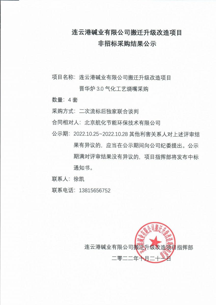 晉華爐3.0氣化工藝燒嘴非招標采購結(jié)果公示